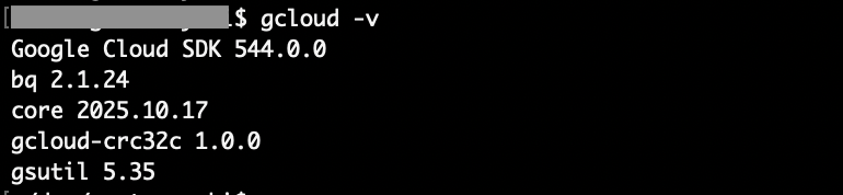 $ brew install --cask google-cloud-sdk※オプション「–cask」が必要です。