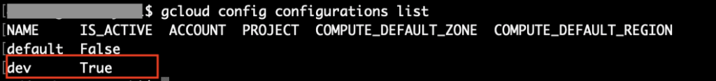 このように事前にプロジェクトID単位で構成を追加設定しておくことで、以下のコマンドを使って簡単に設定の切り替え(dev_pj1、dev_pj2、prod_pj1、prod_pj2などのように作っておいて簡単に環境を切り替える)もできるようになります。