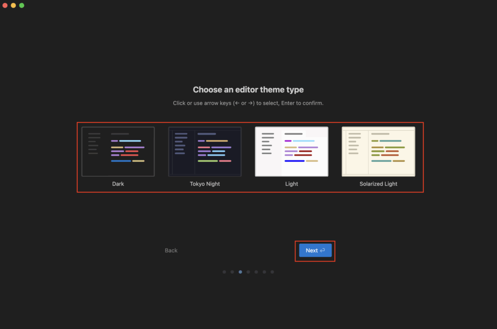 次にお好みのテーマを選択後、「Next」をクリックします。