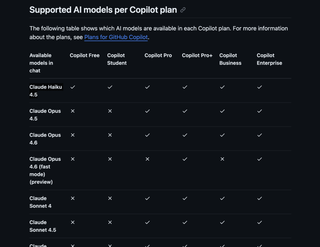 詳しくはGitHub公式のドキュメントページ「GitHub Copilot でサポートされている AI モデル」をご確認下さい。