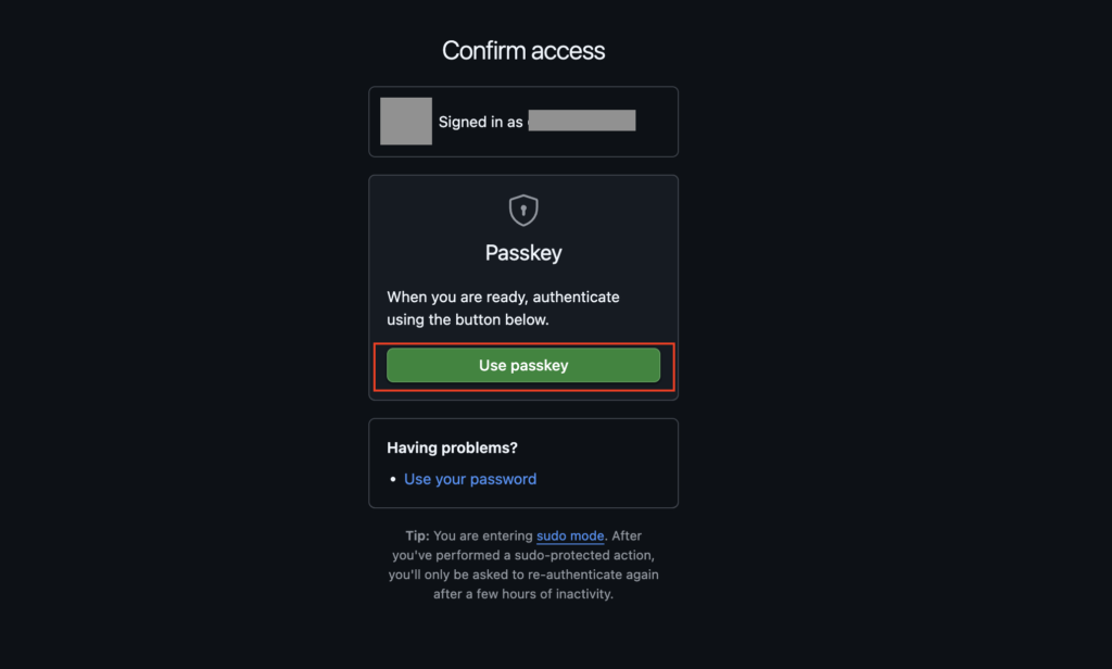 ※私はパスキー認証にしているのでこの画面になってます。(今はパスキー認証推薦なので、まだ導入してない方は早めに入れましょう!)