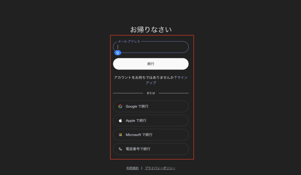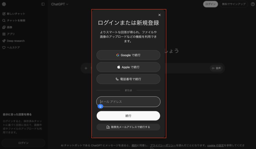 次にポップアップが表示されるので、任意の方法で新規登録をして下さい。