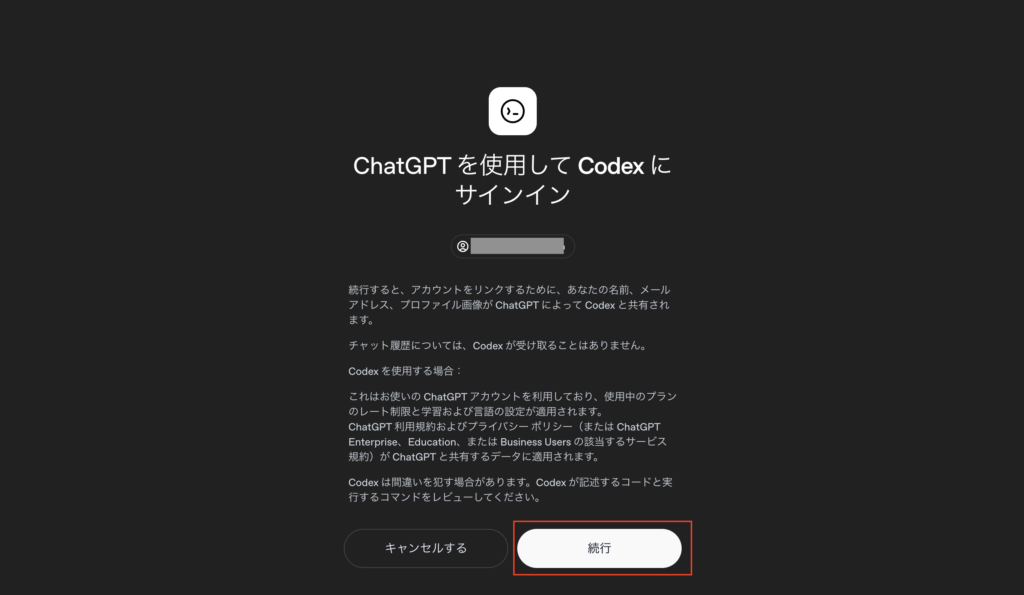 例としては以下のコマンドを実行し、Codex CLIを起動します。