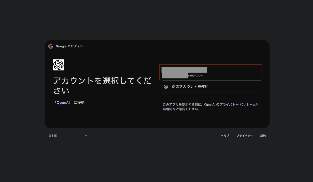 例えばGoogleアカウントで新規登録する場合は、アカウントを選択します。