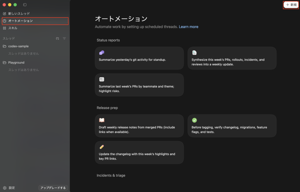 Codexアプリについてはタスクの自動化(オートメーション)機能もあり、タスクをスケジュール登録して定期実行というのが便利ではあるため、興味がある方はぜひ試してみて下さい。