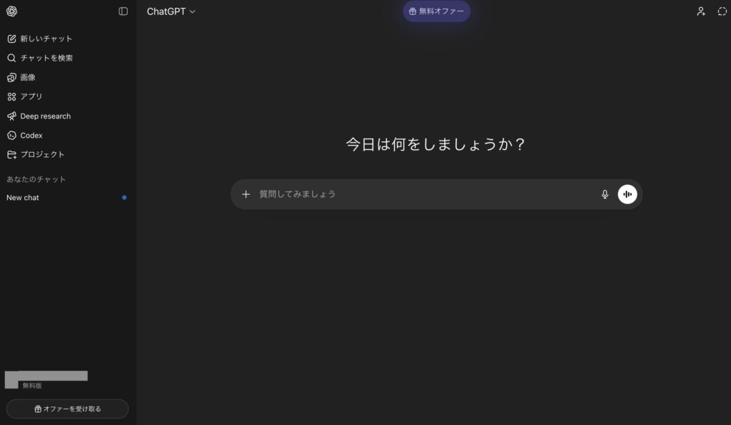 特にCodexアプリのリリース記念で、無料プランでもCodex CLIなどが試せるタイミングになったため、利用してみることにしました。
