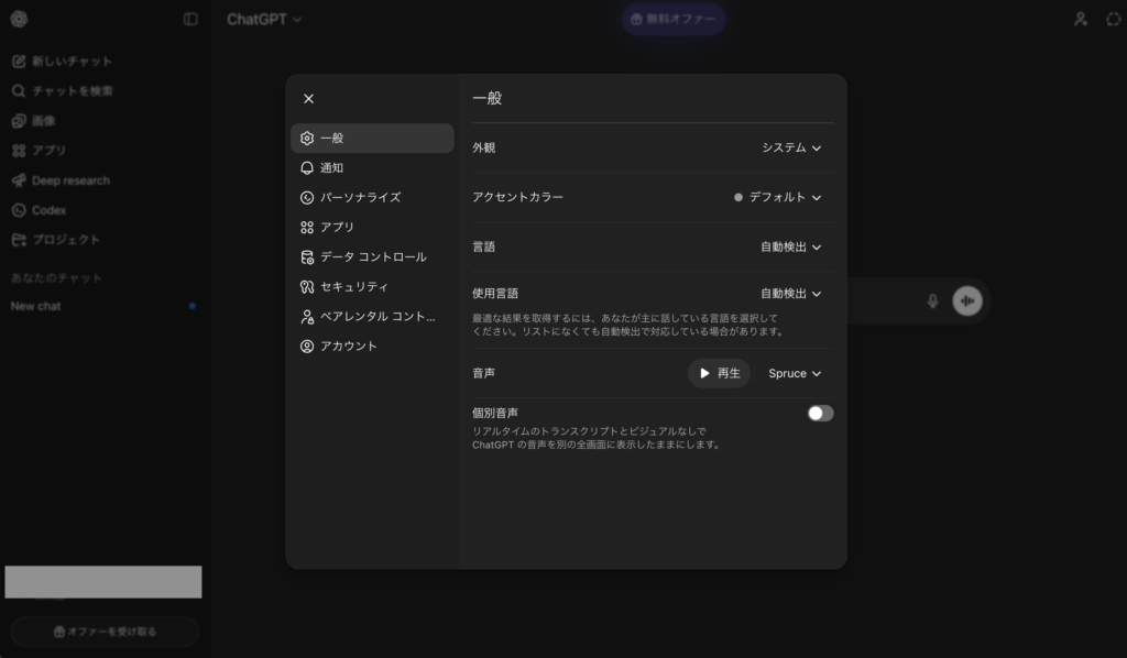 AIの喋り方などが気に入らない場合はここで調整してみて下さい。ただし、この設定は後述のCodex CLIツールには連携されないようです。